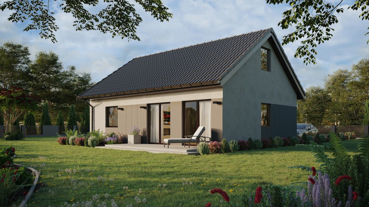 Das Haus ERDOL 1 XL ist eine erweiterte Version des Hauses ERDOL 1. Das Haus mit einer Fläche von 74 m² (116 m² in der Version mit nutzbarem Dachgeschoss) bietet seinen Bewohnern einen komfortablen Raum, in dem alles, was sie brauchen, ist. Seine geringe Größe macht es einfach und kostengünstig in der Instandhaltung. Für den Bau wird KVH-Holz verwendet, das die Grundlage der gesamten Struktur bildet. Dank energiesparender Lösungen Planung verhindert es Energieverluste und ist umweltfreundlich.