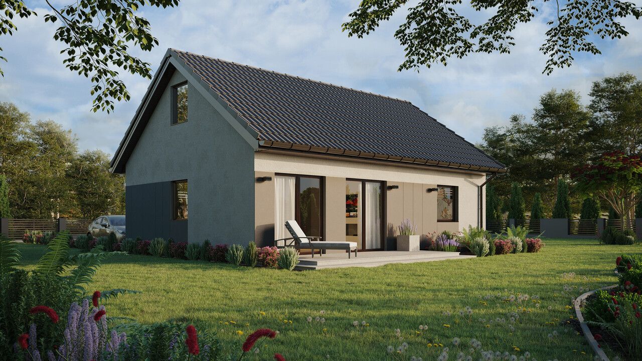Das Haus ERDOL 1 XL ist eine erweiterte Version des Hauses ERDOL 1. Das Haus mit einer Fläche von 74 m² (116 m² in der Version mit nutzbarem Dachgeschoss) bietet seinen Bewohnern einen komfortablen Raum, in dem alles, was sie brauchen, ist. Seine geringe Größe macht es einfach und kostengünstig in der Instandhaltung. Für den Bau wird KVH-Holz verwendet, das die Grundlage der gesamten Struktur bildet. Dank energiesparender Lösungen Planung verhindert es Energieverluste und ist umweltfreundlich.