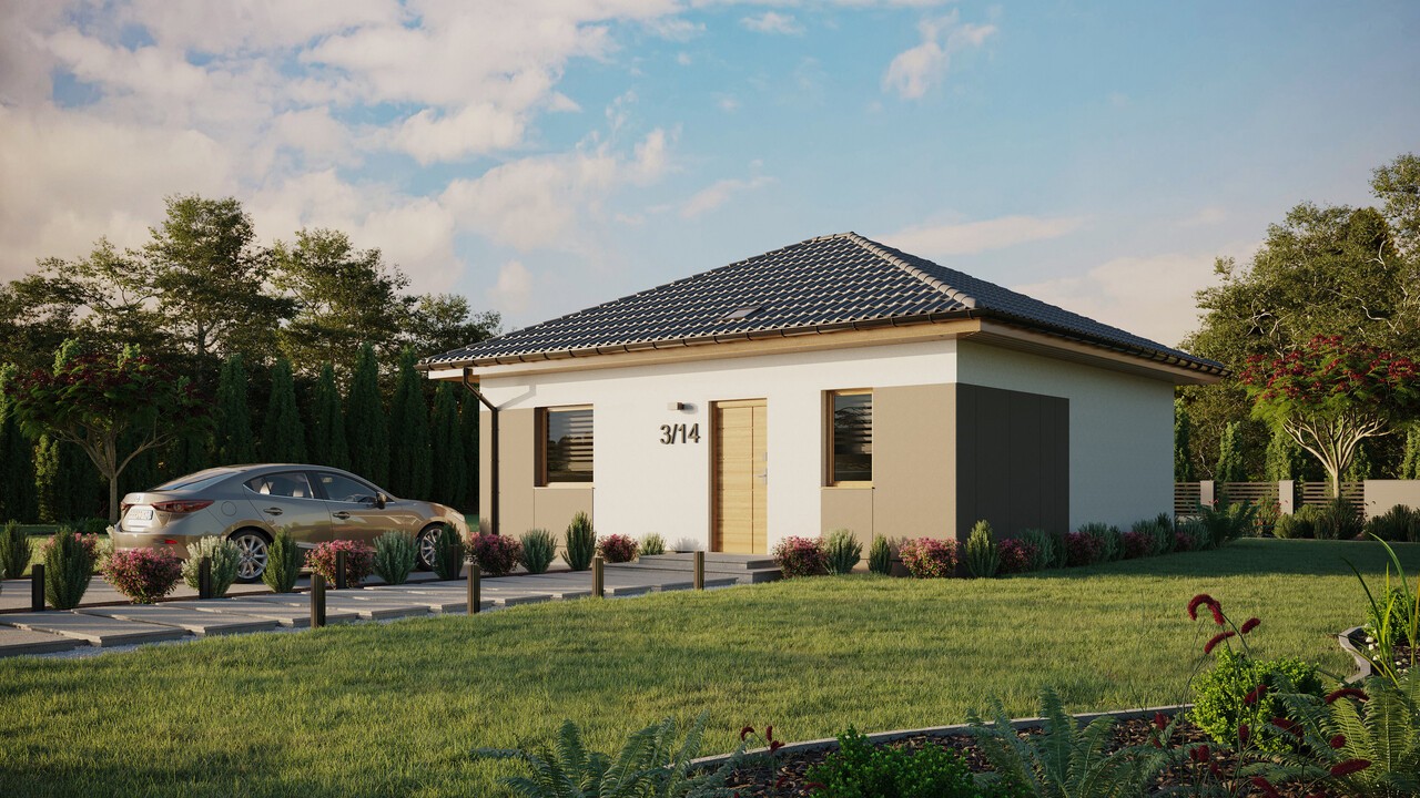 Das Haus ERDOL 1 mit einer Fläche von 59 m² (90 m² in der Version mit nutzbarem Dachgeschoss) bietet seinen Bewohnern einen komfortablen Raum, in dem alles, was sie brauchen, vorhanden ist. Seine geringe Größe macht es einfach und kostengünstig in der Instandhaltung, was in Verbindung mit den modernen und ökologischen Lösungen, die bei seiner Konstruktion verwendet wurden, die Klarheit gibt, dass dieses Haus im Einklang mit der Natur geschaffen wurde.