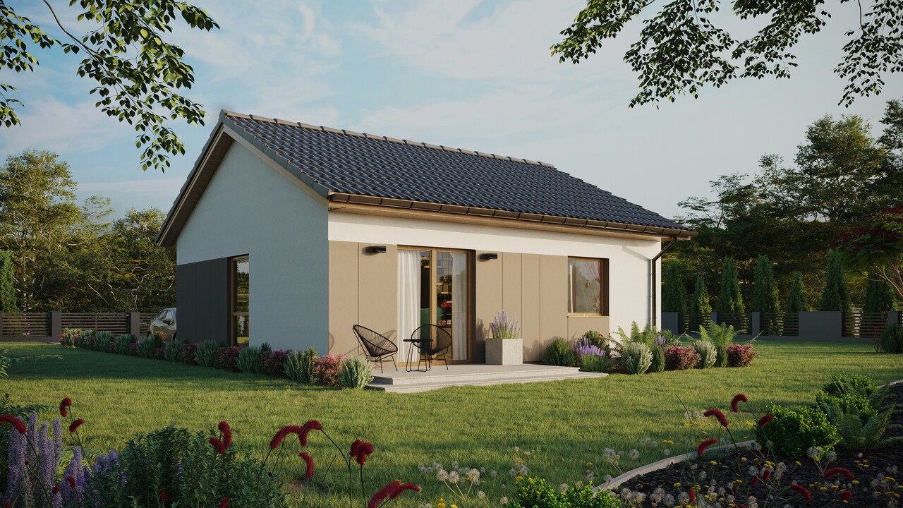 Das Haus ERDOL 1 mit einer Fläche von 59 m² (90 m² in der Version mit nutzbarem Dachgeschoss) bietet seinen Bewohnern einen komfortablen Raum, in dem alles, was sie brauchen, vorhanden ist. Seine geringe Größe macht es einfach und kostengünstig in der Instandhaltung, was in Verbindung mit den modernen und ökologischen Lösungen, die bei seiner Konstruktion verwendet wurden, die Klarheit gibt, dass dieses Haus im Einklang mit der Natur geschaffen wurde.