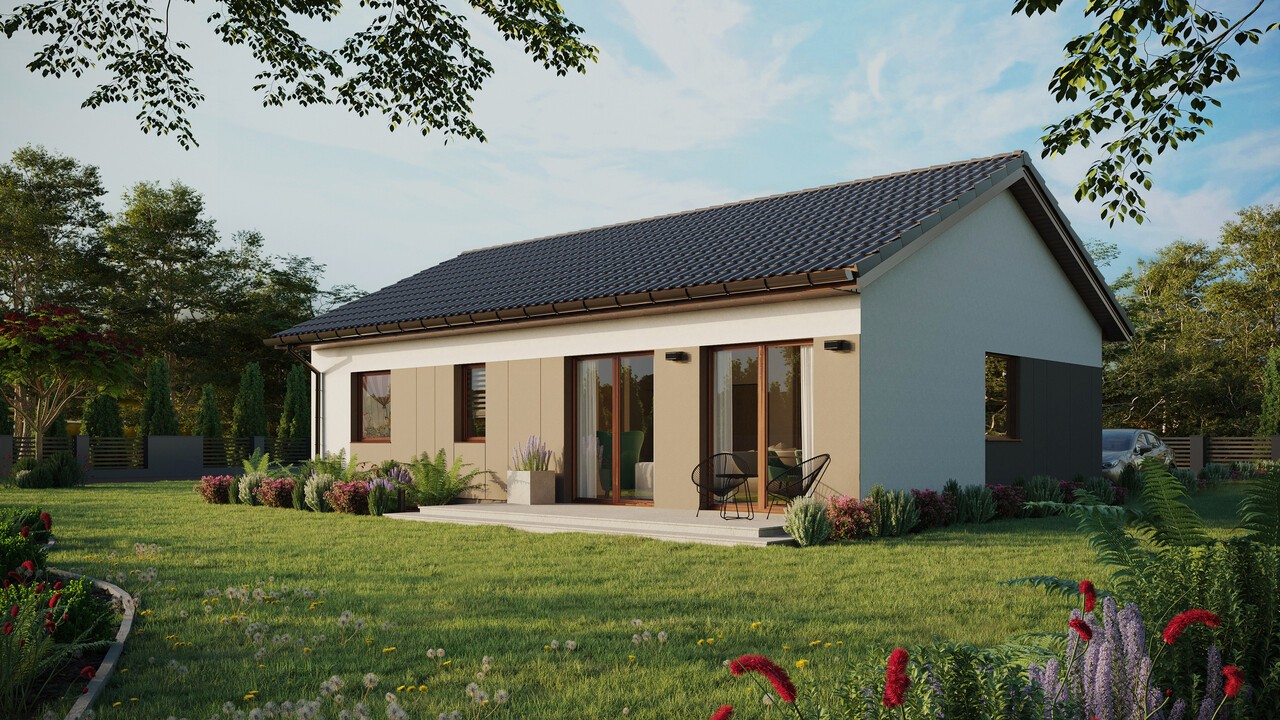 Das Haus ERDOL 2 XL mit einer Fläche von 82 m² (130 m² bei einem Projekt mit nutzbarem Dachgeschoss) ist eine erweiterte Version des Hauses ERDOL 2. Es ist eine perfekte Lösung für alle Menschen, die in ihrem Haus keine große Anzahl an Zimmern benötigen, aber den zusätzlichen Raum nutzen möchten, um mehr Platz für komfortables Arbeiten zu gewinnen. Die in diesem Projekt verwendeten modernen Technologien und ökologischen Lösungen machen es zu einem energieeffizienten Haus, das im Einklang mit der Natur funktioniert. Für den Bau wird KVH-Holz verwendet, das die Grundlage der gesamten Struktur bildet. Entsprechend ausgewählte Dämmstoffe sorgen dafür, dass das Haus vor Wärmeverlusten geschützt ist.