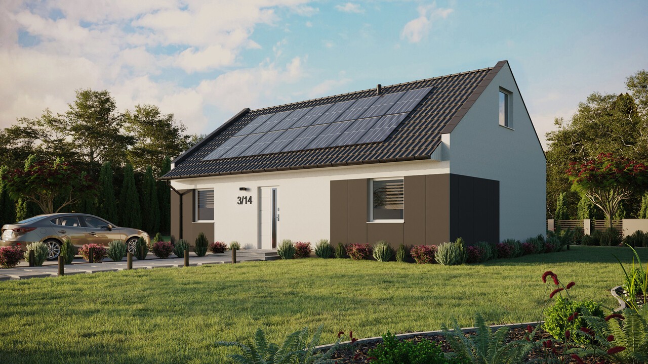 Das Haus ERDOL 2 XL mit einer Fläche von 82 m² (130 m² bei einem Projekt mit nutzbarem Dachgeschoss) ist eine erweiterte Version des Hauses ERDOL 2. Es ist eine perfekte Lösung für alle Menschen, die in ihrem Haus keine große Anzahl an Zimmern benötigen, aber den zusätzlichen Raum nutzen möchten, um mehr Platz für komfortables Arbeiten zu gewinnen. Die in diesem Projekt verwendeten modernen Technologien und ökologischen Lösungen machen es zu einem energieeffizienten Haus, das im Einklang mit der Natur funktioniert. Für den Bau wird KVH-Holz verwendet, das die Grundlage der gesamten Struktur bildet. Entsprechend ausgewählte Dämmstoffe sorgen dafür, dass das Haus vor Wärmeverlusten geschützt ist.