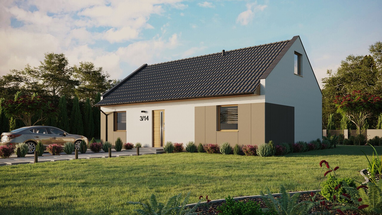 Das Haus ERDOL 2 XL mit einer Fläche von 82 m² (130 m² bei einem Projekt mit nutzbarem Dachgeschoss) ist eine erweiterte Version des Hauses ERDOL 2. Es ist eine perfekte Lösung für alle Menschen, die in ihrem Haus keine große Anzahl an Zimmern benötigen, aber den zusätzlichen Raum nutzen möchten, um mehr Platz für komfortables Arbeiten zu gewinnen. Die in diesem Projekt verwendeten modernen Technologien und ökologischen Lösungen machen es zu einem energieeffizienten Haus, das im Einklang mit der Natur funktioniert. Für den Bau wird KVH-Holz verwendet, das die Grundlage der gesamten Struktur bildet. Entsprechend ausgewählte Dämmstoffe sorgen dafür, dass das Haus vor Wärmeverlusten geschützt ist.