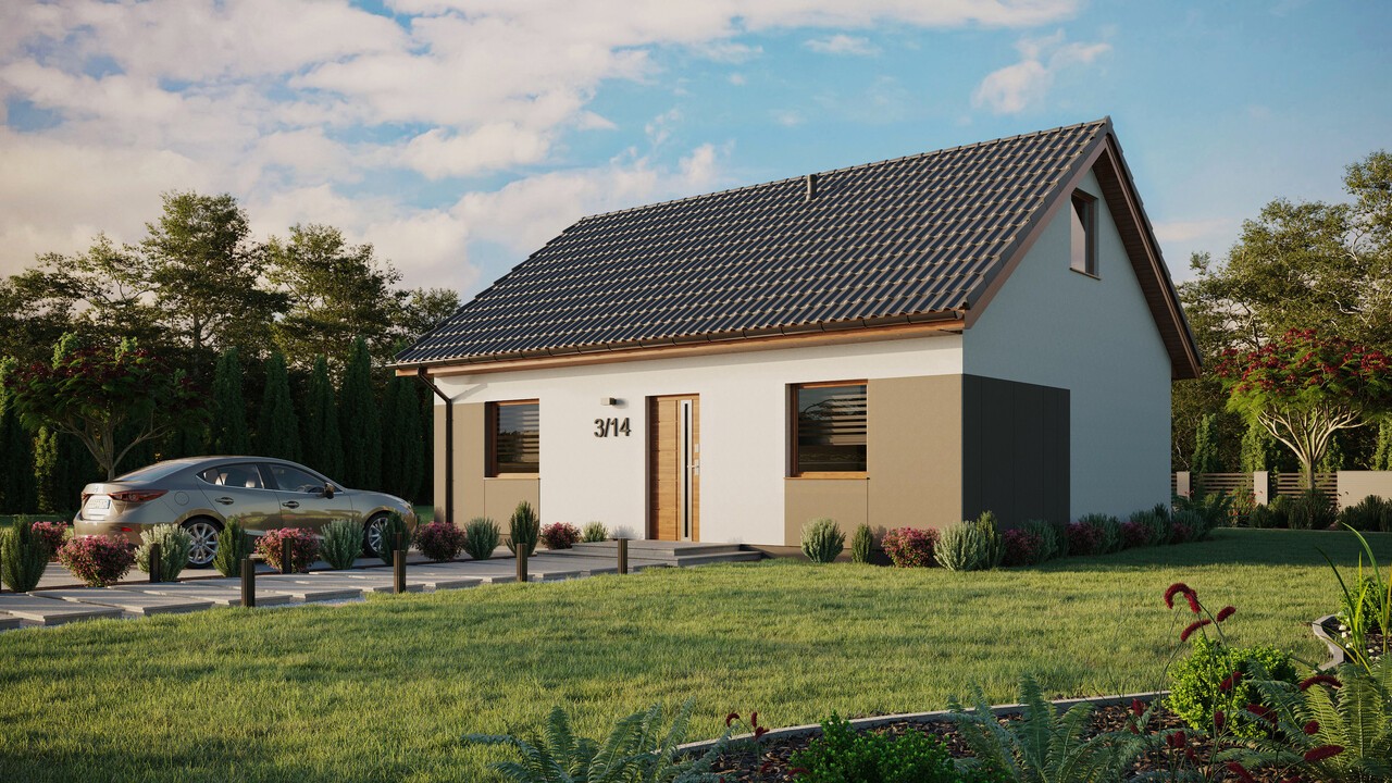 Das Haus ERDOL 2 mit einer Fläche von 68 m² (107 m² in der Version mit nutzbarem Dachgeschoss) wurde entworfen, um auf kompaktem Raum Komfort und alles zu bieten, was im täglichen Leben am wichtigsten ist. Modernste Technologien und ökologische Lösungen machen es zu einem energieeffizienten Haus, das im Einklang mit der Natur funktioniert. Für die Konstruktion wird KVH-Holz verwendet, das die Grundlage der gesamten Struktur bildet. Entsprechend ausgewählte Dämmstoffe sorgen dafür, dass das Haus vor Wärmeverlusten geschützt ist.