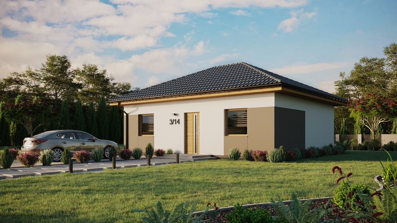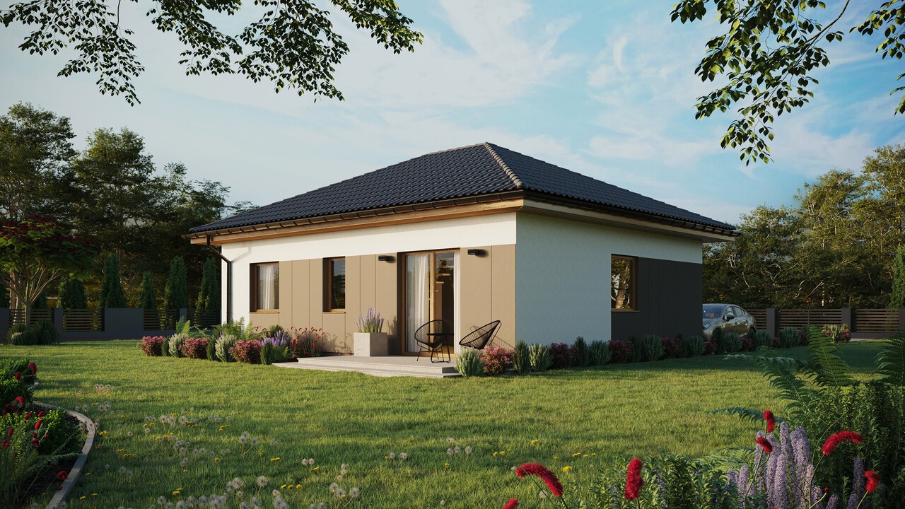Das Haus ERDOL 2 mit einer Fläche von 68 m² (107 m² in der Version mit nutzbarem Dachgeschoss) wurde entworfen, um auf kompaktem Raum Komfort und alles zu bieten, was im täglichen Leben am wichtigsten ist. Modernste Technologien und ökologische Lösungen machen es zu einem energieeffizienten Haus, das im Einklang mit der Natur funktioniert. Für die Konstruktion wird KVH-Holz verwendet, das die Grundlage der gesamten Struktur bildet. Entsprechend ausgewählte Dämmstoffe sorgen dafür, dass das Haus vor Wärmeverlusten geschützt ist.