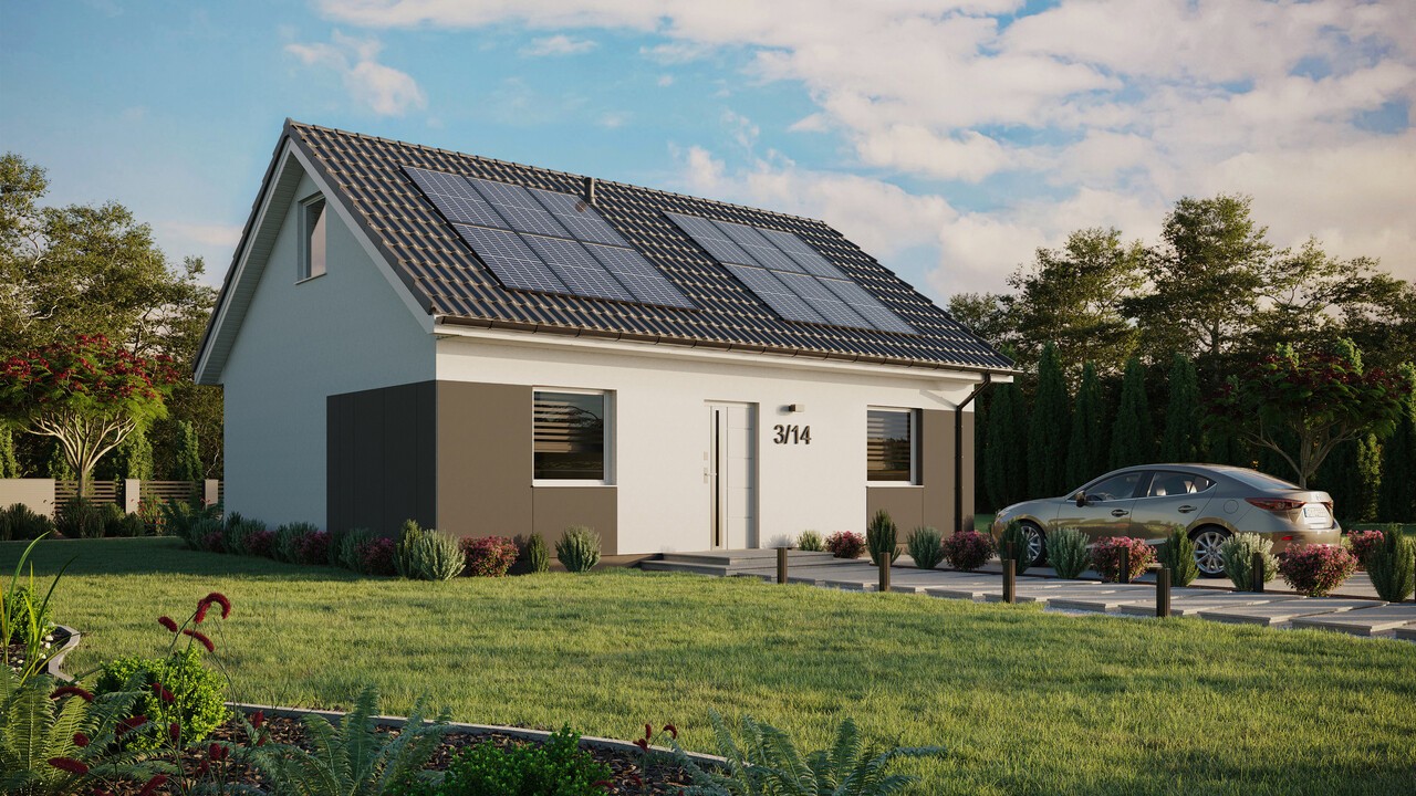 Das Haus ERDOL 2 mit einer Fläche von 68 m² (107 m² in der Version mit nutzbarem Dachgeschoss) wurde entworfen, um auf kompaktem Raum Komfort und alles zu bieten, was im täglichen Leben am wichtigsten ist. Modernste Technologien und ökologische Lösungen machen es zu einem energieeffizienten Haus, das im Einklang mit der Natur funktioniert. Für die Konstruktion wird KVH-Holz verwendet, das die Grundlage der gesamten Struktur bildet. Entsprechend ausgewählte Dämmstoffe sorgen dafür, dass das Haus vor Wärmeverlusten geschützt ist.