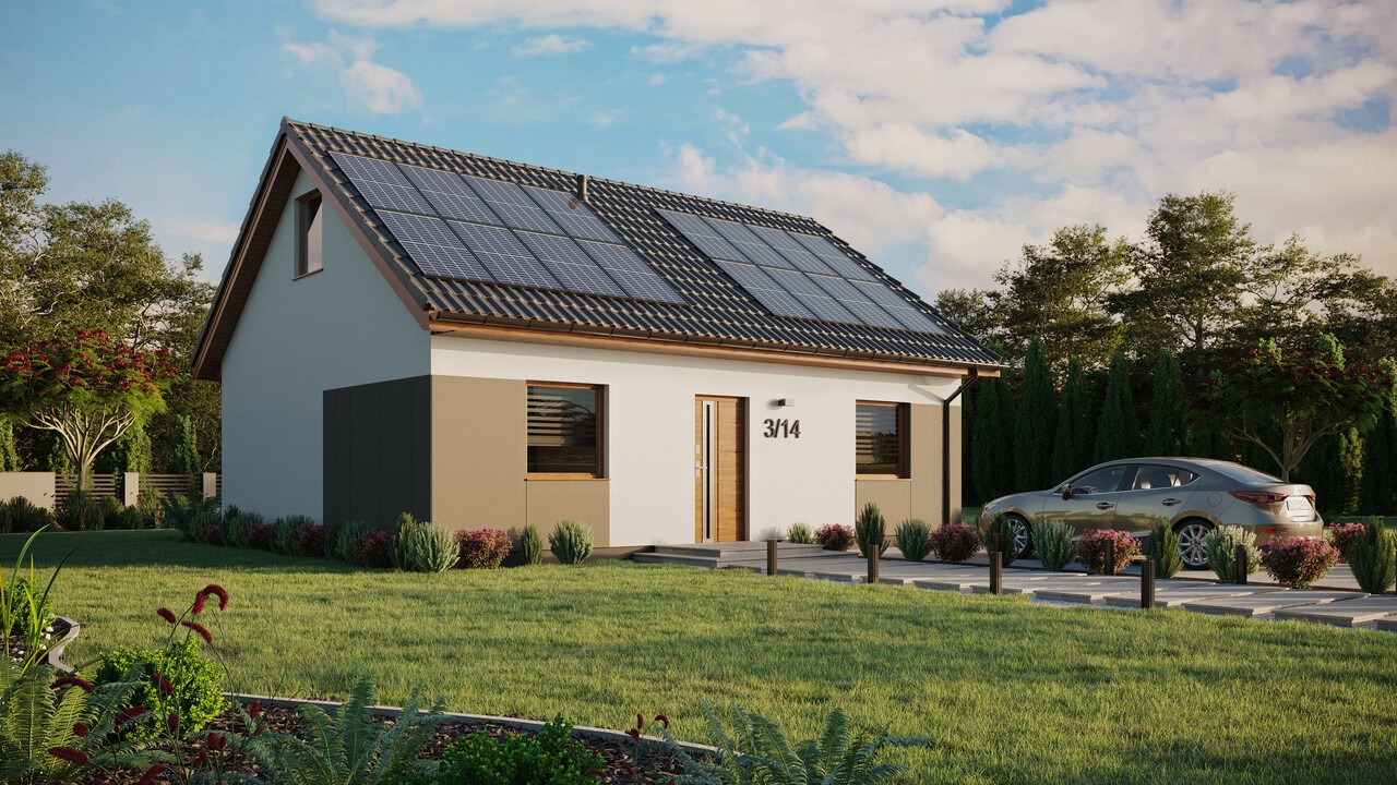 Das Haus ERDOL 2 mit einer Fläche von 68 m² (107 m² in der Version mit nutzbarem Dachgeschoss) wurde entworfen, um auf kompaktem Raum Komfort und alles zu bieten, was im täglichen Leben am wichtigsten ist. Modernste Technologien und ökologische Lösungen machen es zu einem energieeffizienten Haus, das im Einklang mit der Natur funktioniert. Für die Konstruktion wird KVH-Holz verwendet, das die Grundlage der gesamten Struktur bildet. Entsprechend ausgewählte Dämmstoffe sorgen dafür, dass das Haus vor Wärmeverlusten geschützt ist.