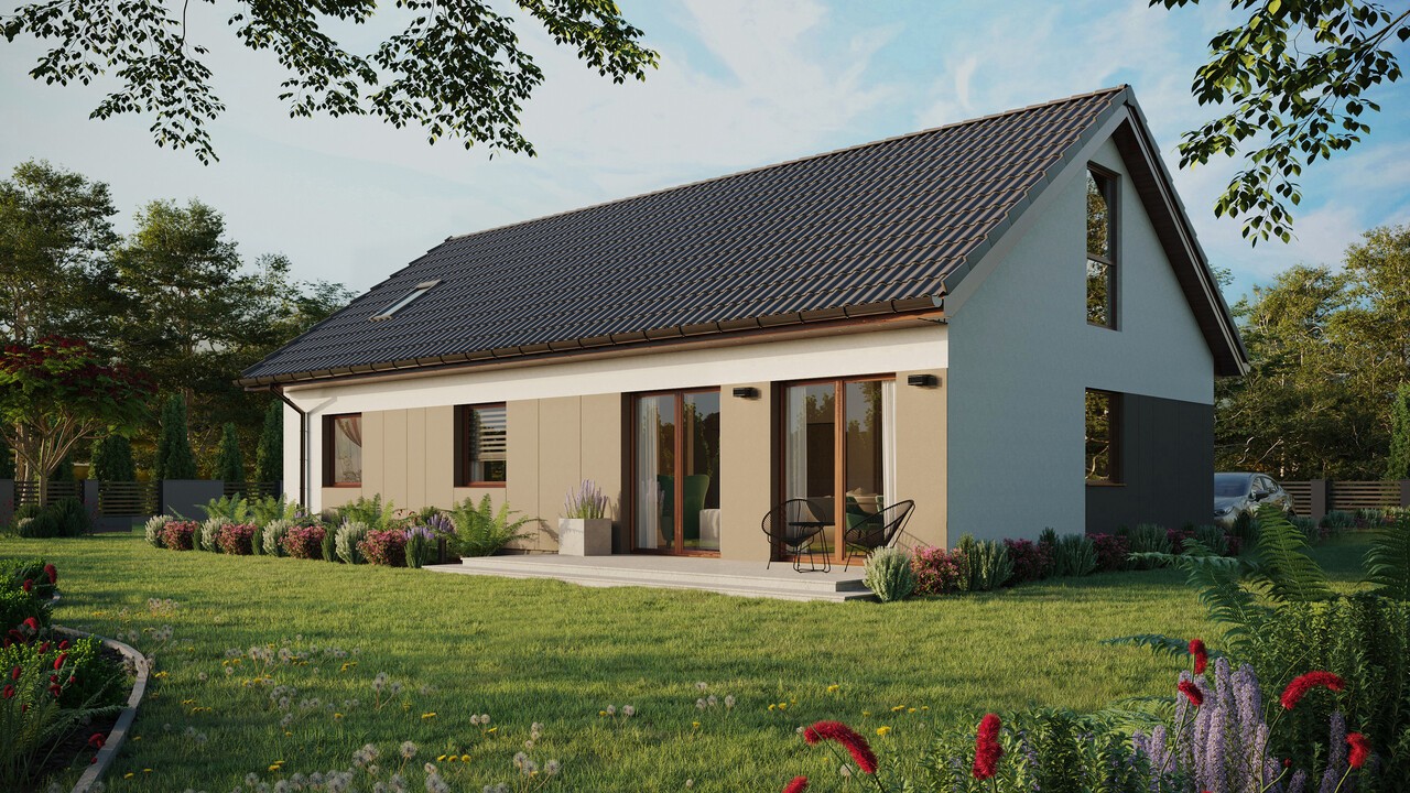 Das Projekt ERDOL 3 XL Haus mit einer Fläche von 97 m² (151 m² in der Version mit nutzbarem Dachboden) ist ein Projekt für Menschen, die mehr komfortablen Platz im Alltag haben wollen. Das Haus in dieser Version ist ein erweitertes ERDOL 3, dank dem es möglich war, die Fläche des Wohnzimmers zu vergrößern und eine separate Treppe (bei der Version mit nutzbarem Dachboden) oder einen zusätzlichen Hauswirtschaftsraum (bei der Version ohne nutzbaren Dachboden) einzurichten. Wenn Sie sich mehr Raum wünschen, ist dieses Projekt ideal für Sie. Die modernen Technologien und ökologischen