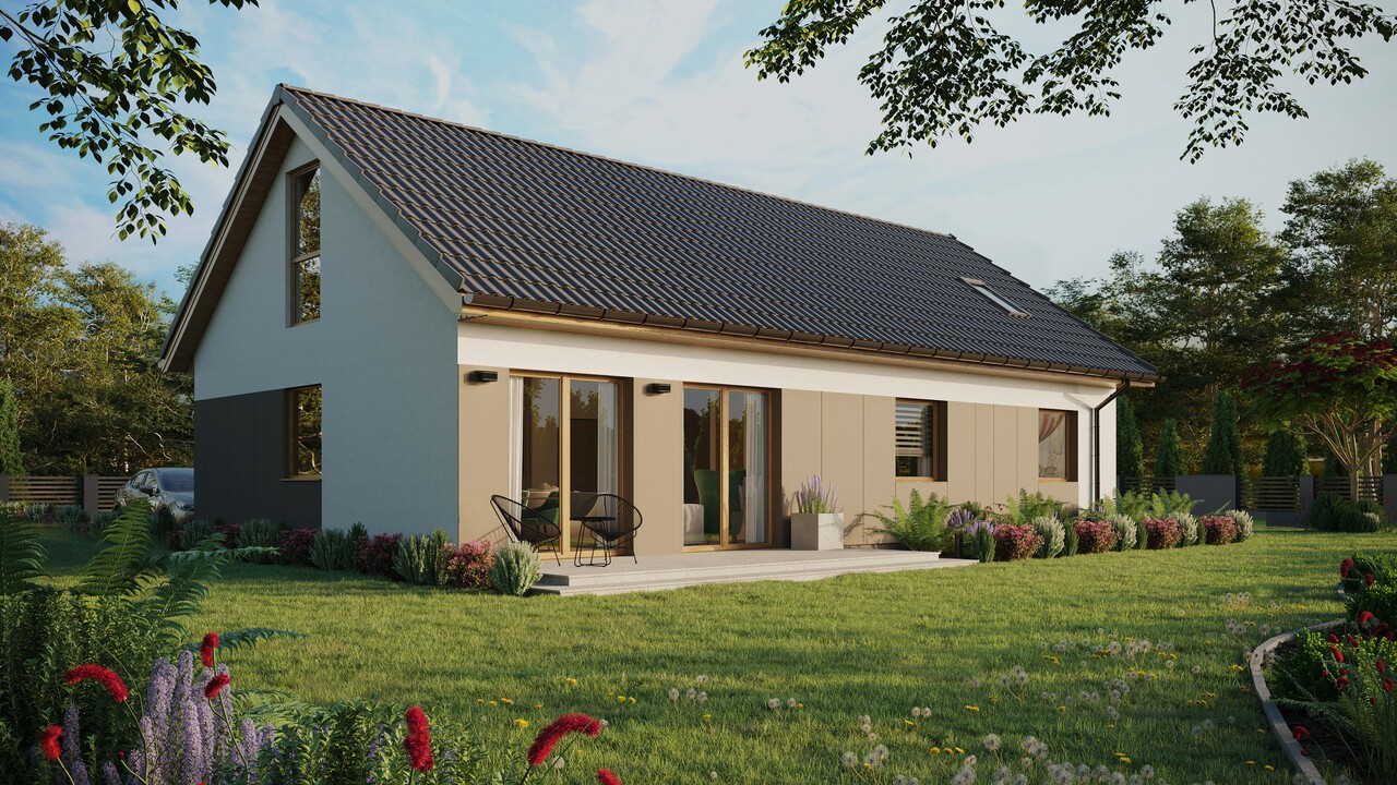 Das Projekt ERDOL 3 XL Haus mit einer Fläche von 97 m² (151 m² in der Version mit nutzbarem Dachboden) ist ein Projekt für Menschen, die mehr komfortablen Platz im Alltag haben wollen. Das Haus in dieser Version ist ein erweitertes ERDOL 3, dank dem es möglich war, die Fläche des Wohnzimmers zu vergrößern und eine separate Treppe (bei der Version mit nutzbarem Dachboden) oder einen zusätzlichen Hauswirtschaftsraum (bei der Version ohne nutzbaren Dachboden) einzurichten. Wenn Sie sich mehr Raum wünschen, ist dieses Projekt ideal für Sie. Die modernen Technologien und ökologischen